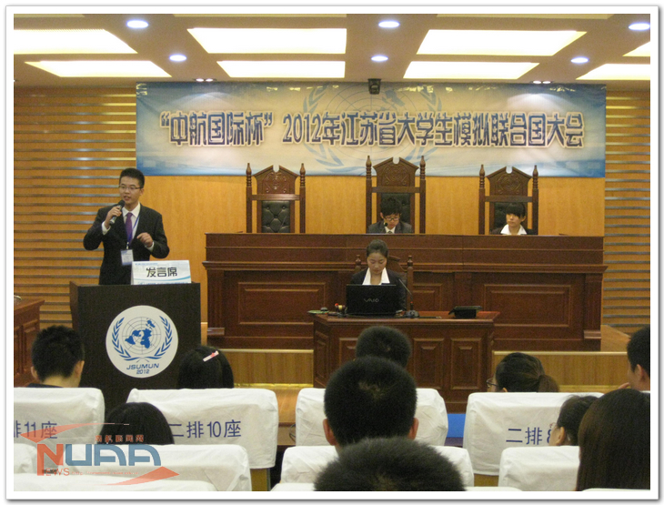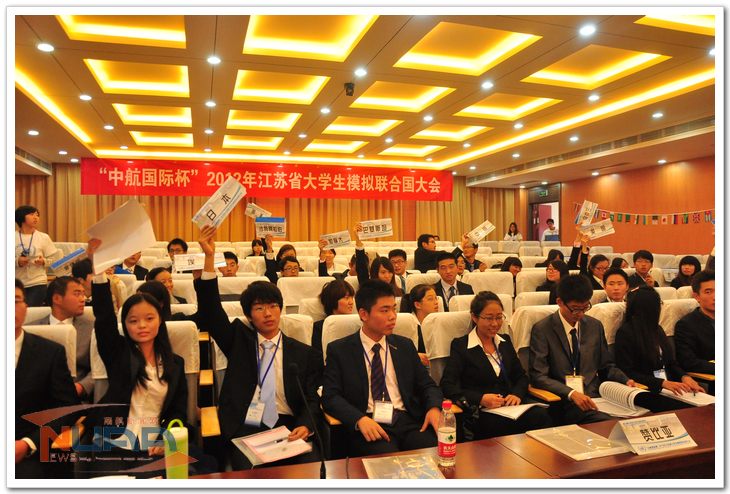 10月27日至28日,“中航国际杯”2012年江苏省大学生模拟联合国大会在我校顺利举行。江苏省少先队总辅导员、组委会荣誉秘书长姜东,共青团江苏省委组织部部长俞锋,江苏省学生联合会主席秦于安、驻会主席张婷与我校副校长吴庆宪出席了大会开幕式,校团委、教务处、学生处、亚洲色情 等部门和学院的负责人共同参加了大会。