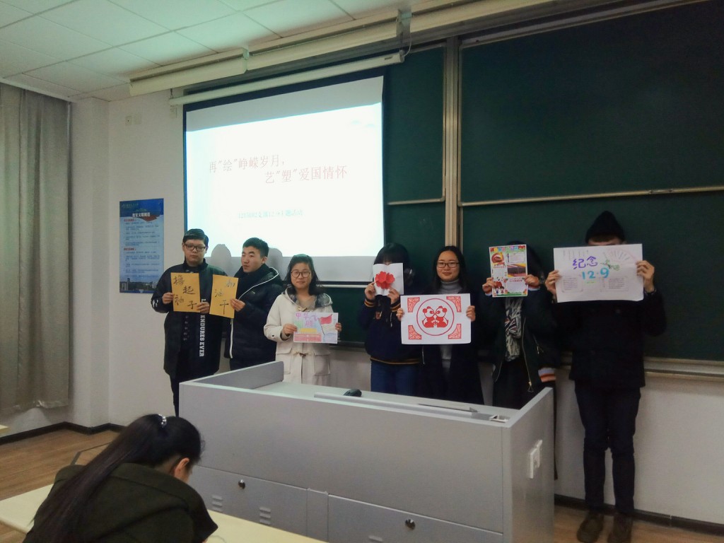 1215101、1215201团支部举办了“铭记历史,展望未来”爱国主题团日活动。活动以班级团支书的演讲拉开帷幕,学生们以团支部为单位观看了《八月一日》等爱国教育电影,回到那段不堪回首的往事,一起看我们的同胞如何在那样的水深火热和民族危亡里挣扎,并唱出一首永不屈服,斗争到底的赞歌;集体合唱《我的中国心》,让每个学生都体会到青年人的使命感和责任感;诗朗诵《祖国——我心中的一首歌》、《一句话》,拳拳爱国之情溢于言表,铭记历史勿忘国耻。