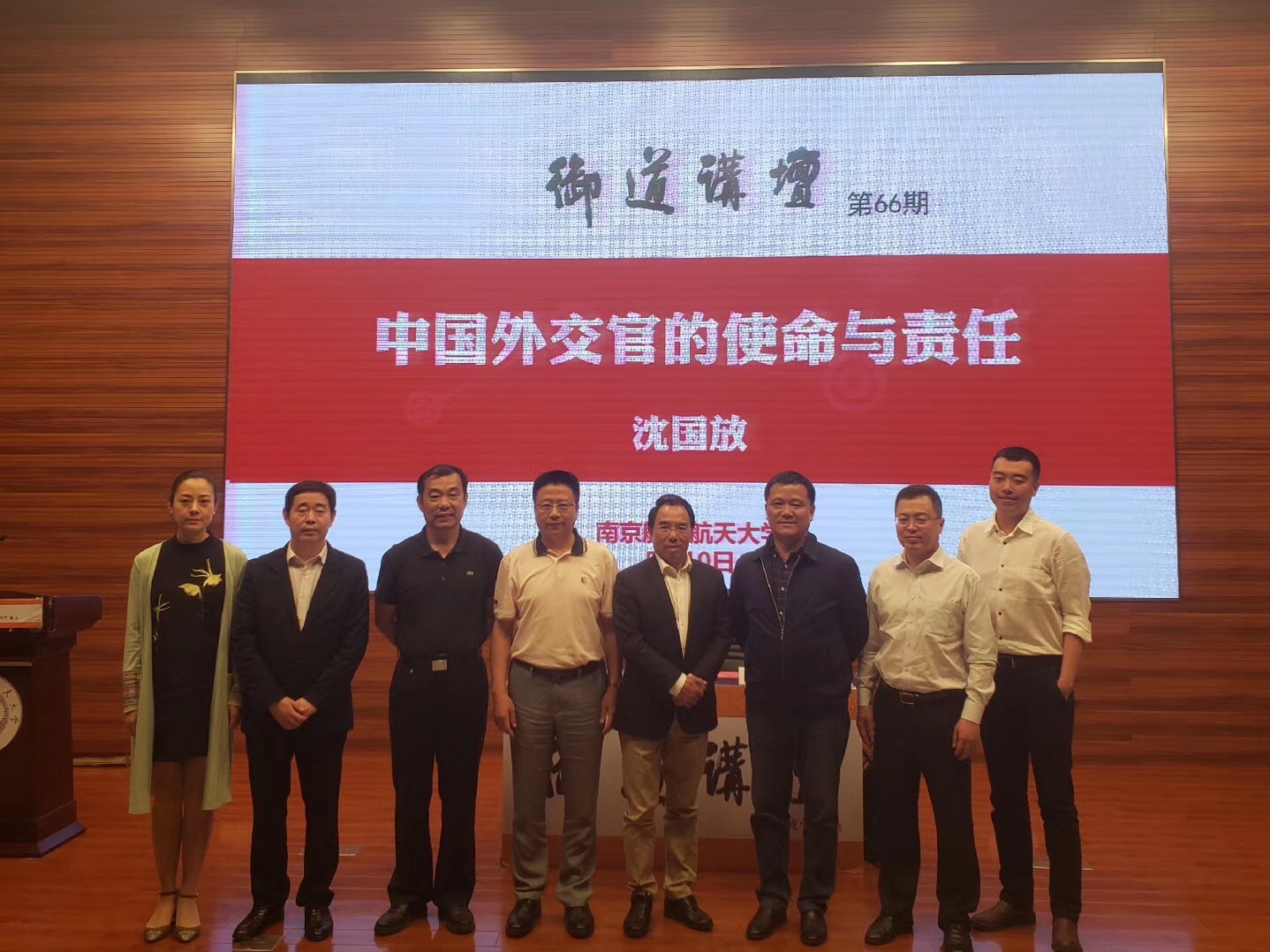 5月10日,第66期御道讲坛在将军路校区一号楼四楼报告厅举行。外交部新闻司原司长、外交部前发言人、中国前驻联合国大使沈国放先生应邀来我校,作了题为“中国外交官的使命与责任”的讲座。中航技进出口有限责任公司党委副书记唐建明、人力资源部部长唐星、人力资源部主管李钧,原总参军谊出版社社长、驻东帝汶使馆武官邵宁,亚洲色情