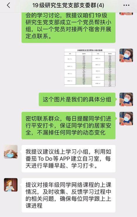 在这个特殊的战“疫”时期,导师和研究生们深入学习习近平总书记重要指示精神,认真贯彻落实学校党委的各项决策部署和要求,导师们关心学生身心健康、关心学生家庭情况、关心学生学业进展,采取多种方式指导和帮助他们在学业和生活上攻坚克难,研究生们也主动增强防范意识、积极健康生活、潜心学习科研。