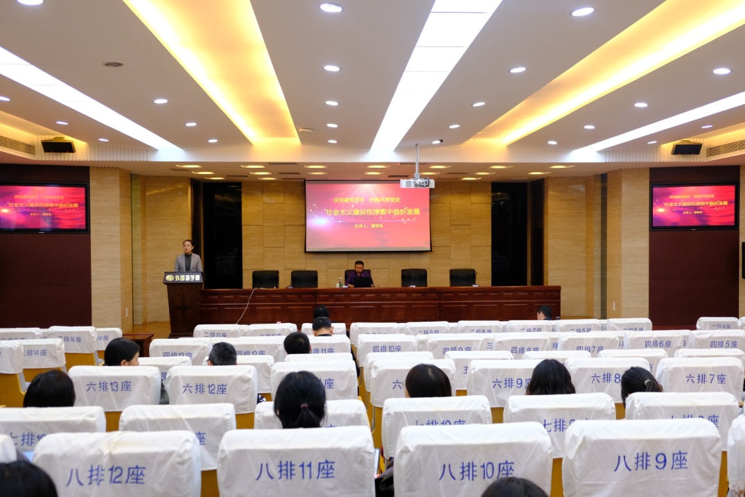 潘银良老师围绕社会主义建设在探索中曲折发展这一主题,从“良好的开局”、“曲折的探索”以及“探索的成果”三个方面系统阐述了社会主义建设的曲折发展史,潘老师逻辑严谨、内容丰富、重点突出,敦促师生党员把学习党史同总结经验、对照现实、推动学习和工作结合起来,同解决实际问题结合起来,师生党员们深受鼓舞和触动。
