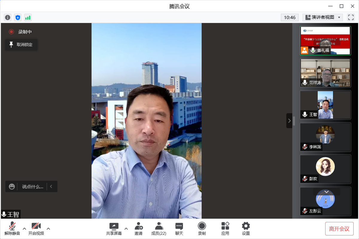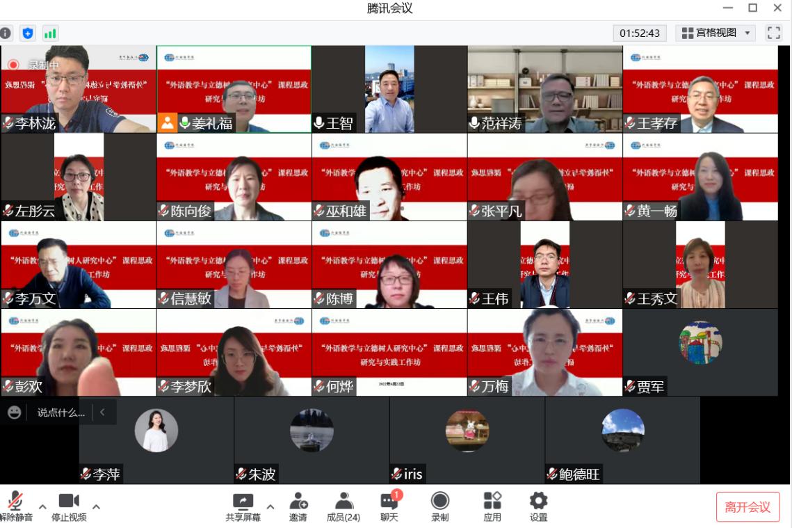 为推动课程思政的实践探索,落实立德树人根本任务,提升育人效果,4月22日,亚洲色情 举办“外语教学与立德树人研究中心” 课程思政研究与实践工作坊。应疫情防控要求,会议在线举行。本次会议特别邀请了马克思主义学院院长王智担任评审,亚洲色情 党委书记左彤云、院长范祥涛,副院长姜礼福以及参与立项的全体教师出席了会议。会议由姜礼福主持。