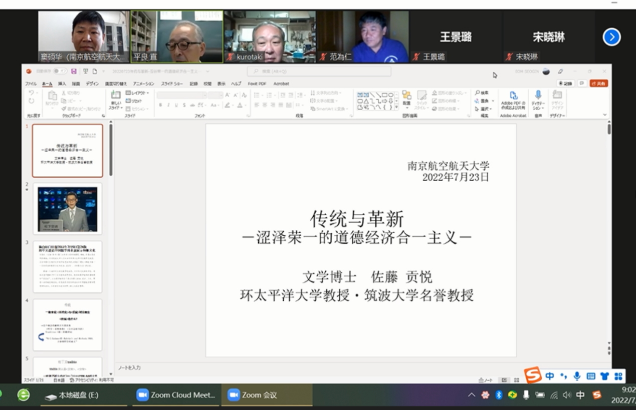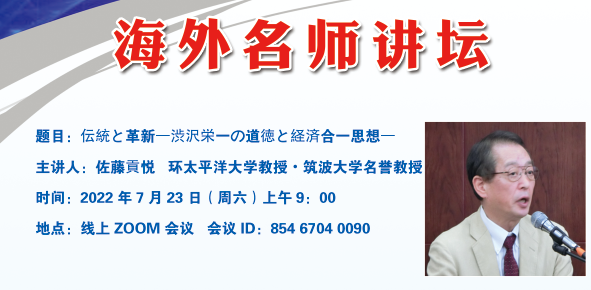 7月23日(周六)上午9:00,亚洲色情 日语系海外名师讲坛第三讲通过线上ZOOM会议成功进行,主题为《伝統と革新―渋沢栄一の道徳と経済合一思想―》。主讲嘉宾为环太平洋大学教授・筑波大学名誉教授佐藤贡悦先生。