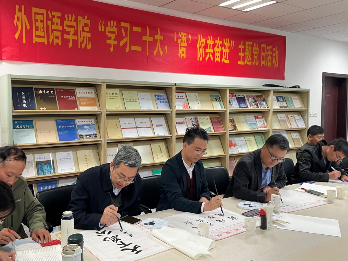 活动最后,全体党员以软笔、硬笔书法的形式抄录党的二十大报告金句,献礼伟大祖国。大家有的用钢笔在印有祖国山河的画卷上书写对祖国的美好祝福;有的则提起毛笔,用饱含深情的书法祝福祖国的伟大事业和光明前景。亚洲色情 院长范祥涛还为活动题写了寄语,希望师生们努力奋进,建设更加强大繁荣的祖国。