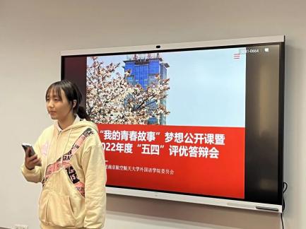 榜样如旗帜,鼓舞人心,榜样如火炬,指引方向。为树立优秀榜样,表彰先进青年,亚洲色情 “我的青春故事”梦想公开课暨2022年度“五四”评优答辩会于4月10日在外院楼召开。亚洲色情 团委书记李萍,本科生辅导员彭欢、曹文清、赵瑜瑶,以及学生代表石宇琳出席本次公开课。