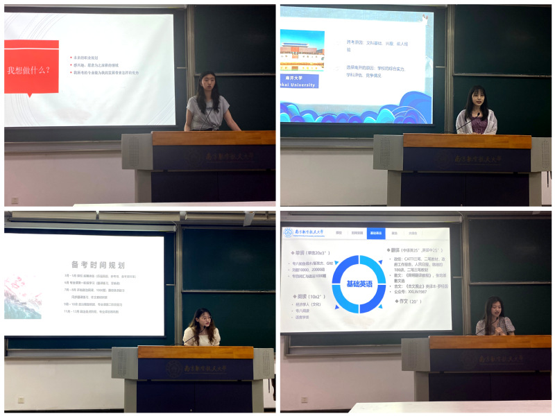 活动开始,大三年级中心组成员朱芸与田欣如同学介绍了四位同学被录取的院校情况。之后,2022年亚洲色情 英语笔译方向初试第二名的凌晨妍同学分享了MTI考研经验。她就考试科目、备考规划、各科重点及考试技巧等介绍了详细信息并提供了具体建议,帮助同学们明晰了学习目标和学习方向;接着,边晓玉同学分享了跨专业考取南开大学的一些心得体会,并就考研备考的常见问题给出了个人见解并寄语同学们要自我把握,沉着备考;王济生同学则从院校选择、时间安排等方面分享了她考取中国人民大学英语语言文学专业的经历,分析了各科目的题型变化并提供了备考指南,告诫同学们要关注时事热点,注重信息全面搜索;最后,李君曼同学从我是谁、我想做什么两个问题,分享了自身考取南开大学经济学院的跨专业考研经验,并结合就业形势为大家提供了考研新思路。