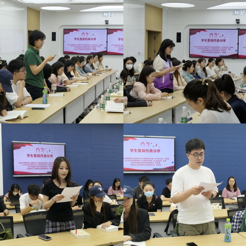 来自经济与管理学院、人文与社会科学学院、艺术学院及马克思主义学院的学生党员代表刘婧寅、杨婷、顾梦嫄和刘烨晖结合自身学习成长经历,分享了心得体会,他们表示,作为青年党员,要自觉从习近平新时代中国特色社会主义思想中汲取奋发进取的智慧和力量,熟练掌握其中蕴含的思想方法和工作方法;要时刻牢记自己的职责使命,把个人理想融入到实现中华民族伟大复兴的伟大事业中去;要深入学习贯彻习近平新时代中国特色社会主义思想,不断提高自己的政治素质和工作能力,为实现中华民族伟大复兴的中国梦而努力奋斗。
