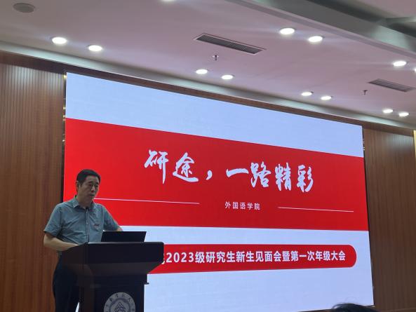 英语系主任张立新鼓励新生以立德树人和服务国家、行业、学业为导向,固本强基、守正创新,在掌握听、说、读、写的语言基础的同时,培养开阔的国际视野与较好的跨学科跨文化沟通合作能力;日语系主任窦硕华以“选择南航日语,开辟精彩人生”为主题,通过数据展示,清晰明了地展现了南航日语在行业内的优势以及专业特色。