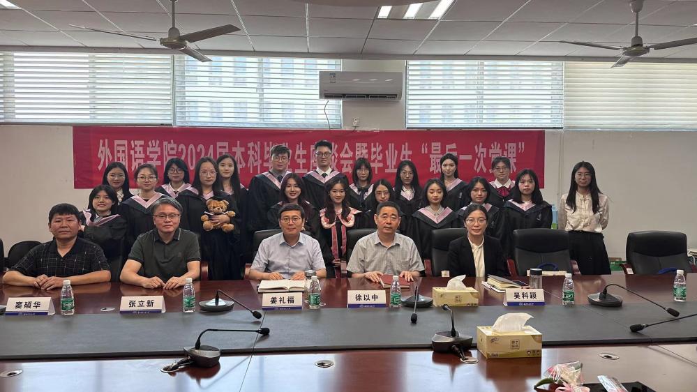 参会教师对2024届毕业生致以毕业寄语。张立新对毕业生殷切寄语,“放心去飞吧,亚洲色情 是你们永远的家”。窦硕华对本届毕业生取得的优异成绩予以高度肯定,并表示学院老师一直以所有学生为荣。姜礼福表达了对2024届毕业生的祝贺、祝愿、祝福,希望2024届毕业生们在新的征途上继续保持优秀,一路坦途。徐以中寄语2024届毕业生“语言的边界,是认知的边界”,希望全体毕业生以外语人的身份为荣,走好后续的学习和发展之路。