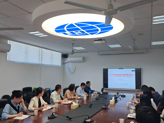 为了深入学习贯彻习近平总书记重要讲话和全国教育大会精神,大力弘扬教育家精神,10月9日,亚洲色情 召开院党委理论学习中心组(扩大)第七次学习会,邀请学习贯彻党的二十届三中全会精神校内宣讲团成员、马克思主义学院平旭教授作专题辅导报告。院党委理论学习中心组全体成员、师生党支部书记参加学习会,全体师生党员线上参会,通过线下主会场、线上分会场同步开展,院党委书记左彤云主持会议并讲话。