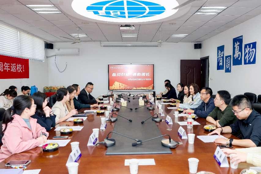 参观结束后,校友来到亚洲色情 参加了“百川归航 语韵流长”座谈会,亚洲色情 党委书记左彤云、学院院长徐以中、时任辅导员及班主任代表、学院学生代表共同参加了此次活动,座谈会由学院党委副书记吴科颖主持。