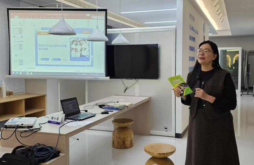 谢小苑为同学们带来了英语学习策略与方法的讲座,为同学们提供了宝贵的学习方法指导和学业发展建议。她指出,语言专业的学生应从听、说、读、写四个方面提升语言技能,并学会使用在线课程等资源进行学习。此外,同学们还还应积极参与实践,学会将英语运用到实际生活中。最后,谢老师指出,语言学习不仅仅是知识的掌握和技能的提升,还包括跨文化交际能力的培养,她向同学们分享了跨文化交际能力的培养策略。