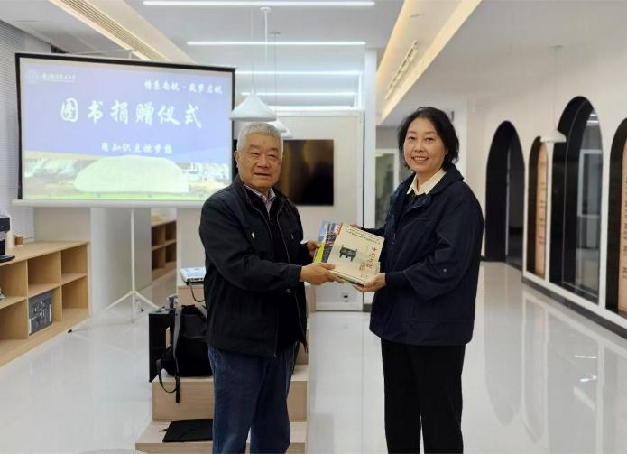 讲座开始前,吴鼎民、谢小苑向学院捐赠了个人主编的《中国文化概览》《大学英语学习方法与策略》等书籍,希望学院学生加强阅读,提升英语基础能力,为未来的学习和职业生涯打下坚实的基础;同时不忘拓宽视野,发挥外语专业的使命,在语言学习中加深对中华文化的理解与传承,为讲好中国故事,发出中国声音贡献力量。左彤云代表学院接受赠书。