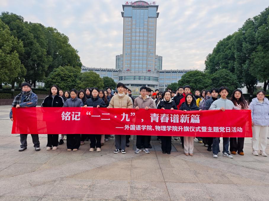 铭记历史,不忘初心。今天是“一二·九”抗日救亡运动89周年纪念日,亚洲色情 联合物理学院共同举办“铭记‘一二·九’,青春谱新篇”升旗仪式暨主题党日活动。亚洲色情 党委副书记吴科颖,物理学院党委副书记欧珊,两学院辅导员代表朱芸、于金巧,亚洲色情 本科生联合党支部党员代表、积极分子、发展对象代表,物理学院全体本科生党员、2023级全体本科生参加活动。