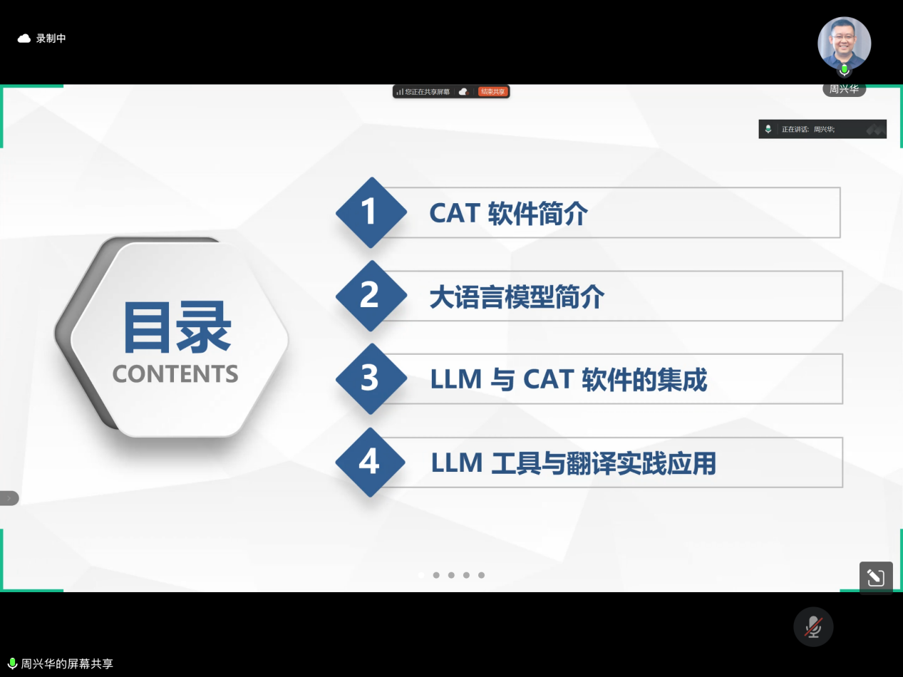 在数字化转型加速演进的背景下,人工智能技术的突破性发展正推动各领域技术革新,AI翻译软件也随之不断涌现。为优化学科人才培养路径,亚洲色情 MTI教育中心于2025年3月10日特邀翻译技术专家周兴华老师作了题为“大语言模型与翻译实践——工具与应用”的讲座。本次讲座由鲍德旺教授主持,亚洲色情 2024级全体MTI硕士研究生参加。