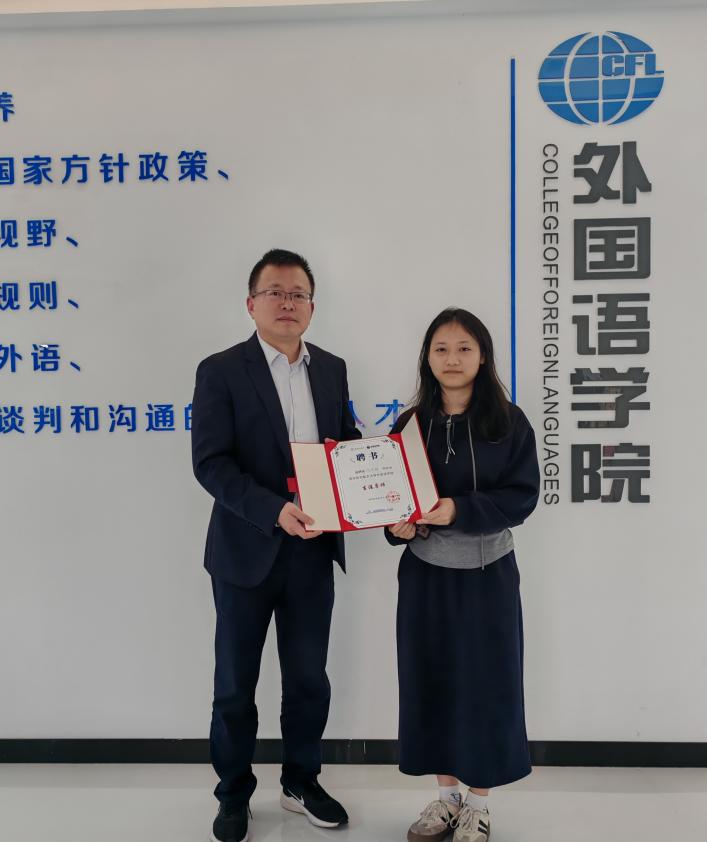 交流结束后,辅导员易邦妮代表学院向顾华锋颁发“生涯导师”聘书,希望双方在校企联动、企业实习等方面加强合作,共同为培养优秀的外贸行业人才贡献力量。