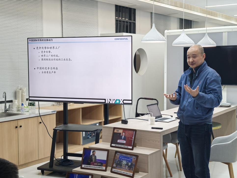 3月27日上午,顾华锋为同学们开展沙龙讲座。首先,顾华锋向同学们介绍了国泰华盛公司的企业概况、发展导向、全球布局等相关信息。接着,他以公司的“金种子”人才计划为引,向同学们强调在短暂的大学生活中,应努力提高身体素质、拓宽国际视野、积累跨学科知识和磨练个人品质,以便更好地适应快速转型的外贸行业,成为更加具有竞争力的专业人才。