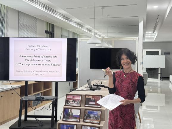 在题为“寂静与贵族式树木构筑的圣殿:D.H.劳伦斯笔下生态挑衅性的遥远南方”的讲座中,Stefania教授深刻阐释了劳伦斯文学世界中由寂静与贵族式树木构建的生态圣殿,既揭示了工业文明对自然的暴力侵袭,也展现了原始生态智慧的诗意救赎。讲座系统梳理了劳伦斯南方书写的生态哲学脉络,重点解析The Trespasser 与 The Man Who Loved Islands中自然报复机制的双重表征,并探讨了伊特鲁里亚文明作为古老而年轻的生态范式对现代社会的启示意义。Stefania教授特别分享了劳伦斯如何通过树木意象构建神圣空间、在叙事中植入生态预警系统,以及重塑人地关系的文学实践,为生态批评理论提供了新的解读视角。