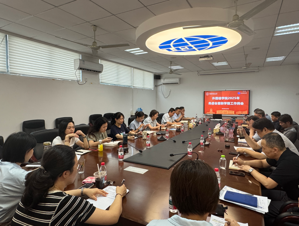为贯彻落实国家教育强国战略部署,精准服务学校2035年发展目标,履行历史新节点下外语学科的使命担当,8月30日,亚洲色情 召开2025年暑期务虚会暨新学期工作例会。会议紧密围绕学校“十年行动计划”与“十五五”规划核心要求,聚焦学院中长期发展规划、新学期重点工作等关键议题展开深入研讨。学院全体党政领导、系部主任、党支部书记、中心主任及机关科级干部等参加会议。