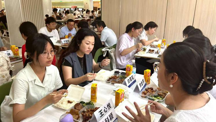 午餐时分,学院领导来到新生用餐现场,与同学们围坐一桌,在轻松的用餐氛围中关切询问饮食适应情况,倾听新生初入校园的感受。