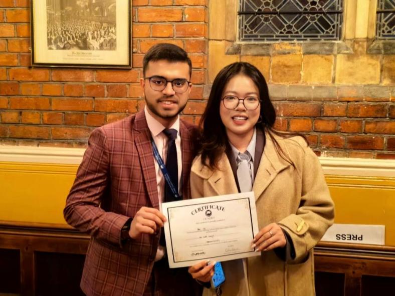 近日,在英国牛津大学举行的2025牛津国际模拟联合国大会上,我校代表团作为唯一来自中国的代表团,荣获“最佳立场文件奖”(Best Position Paper)与“最佳发言奖”(Best Speech),成绩居于非母语国家高校前列。